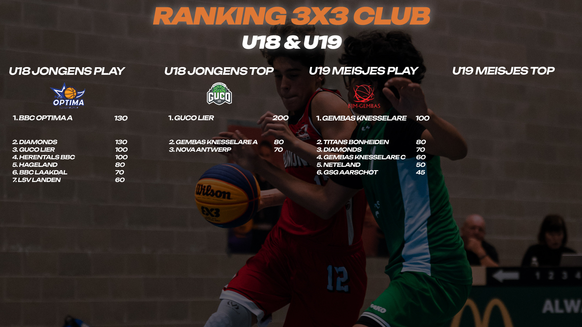 Hieronder kan je de rankings zien in de 3x3 CLUBcompetitie in alle leeftijdscategorieën!